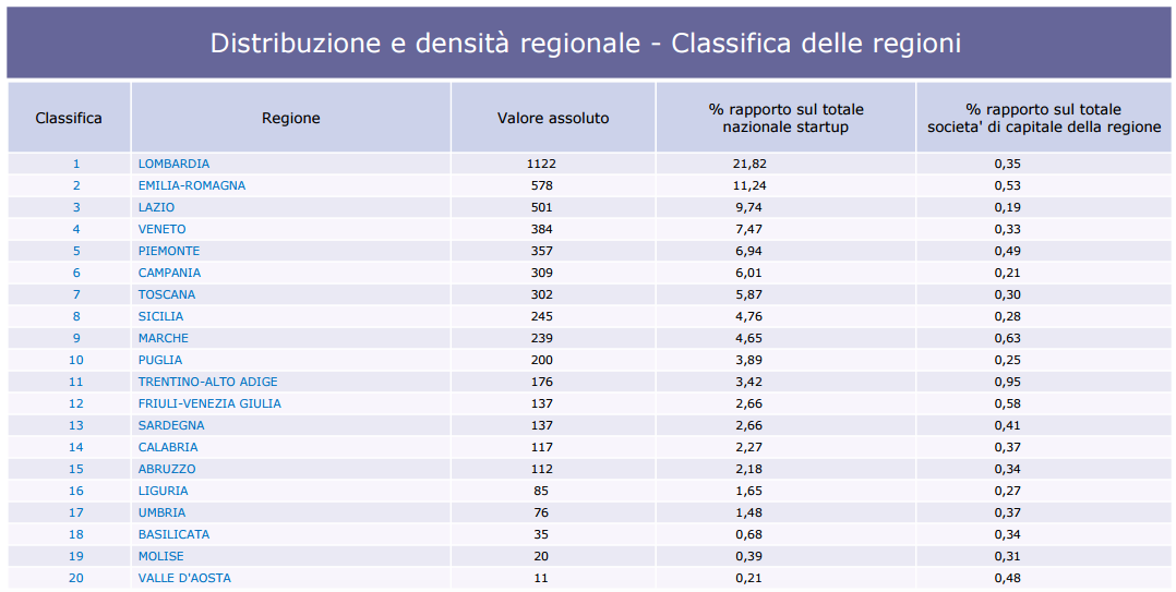 Startup innovative in Italia al 31/12/2015 – fonte: Infocamere