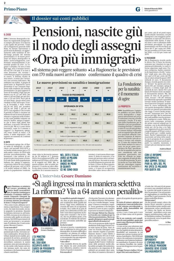 E cio’, mentre viceversa gli anziani ultrasessantacinquenni aumenteranno: sono già oggi piu’ di 14 milioni (2023) e diventeranno 20 milioni entro il 2040.