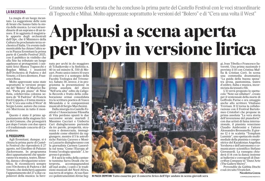 L’articolo ripercorre la storia e l’evoluzione dell’Orchestra di Padova e del Veneto (OPV) in vista del suo 60° anniversario nel 2026. L’autore, Amedeo Levorato, ne descrive il percorso come un’istituzione musicale che ha saputo rinnovarsi nel tempo, affrontando le sfide del contesto culturale ed economico.